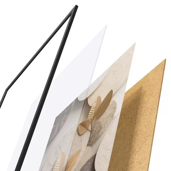 Plakat składa się z ramy, pleksi, wydrukowanego obrazu i podkładu z płyty wiórowej. Plakat można natychmiast zawiesić na ścianie dzięki uchwytom z tyłu.