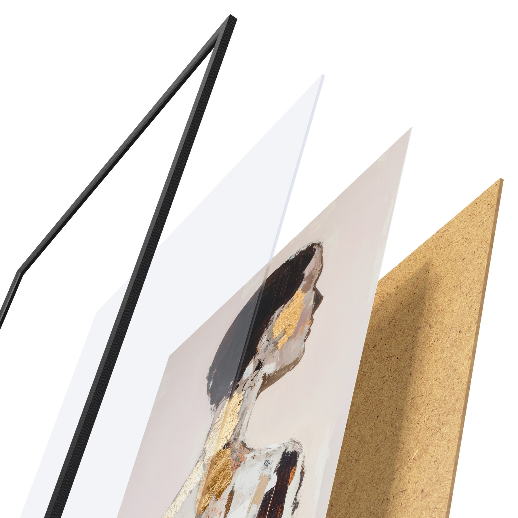 Plakat składa się z ramy, pleksi, wydrukowanego obrazu i podkładu z płyty wiórowej. Plakat można natychmiast zawiesić na ścianie dzięki uchwytom z tyłu.
