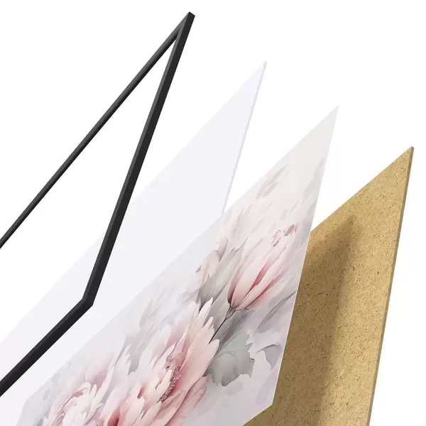 Plakat składa się z ramy, pleksi, wydrukowanego obrazu i podkładu z płyty wiórowej. Plakat można natychmiast zawiesić na ścianie dzięki uchwytom z tyłu.