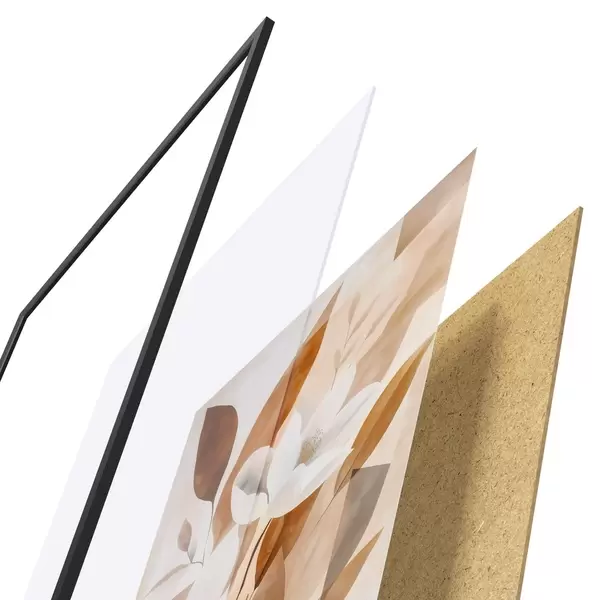 Plakat składa się z ramy, pleksi, wydrukowanego obrazu i podkładu z płyty wiórowej. Plakat można natychmiast zawiesić na ścianie dzięki uchwytom z tyłu.
