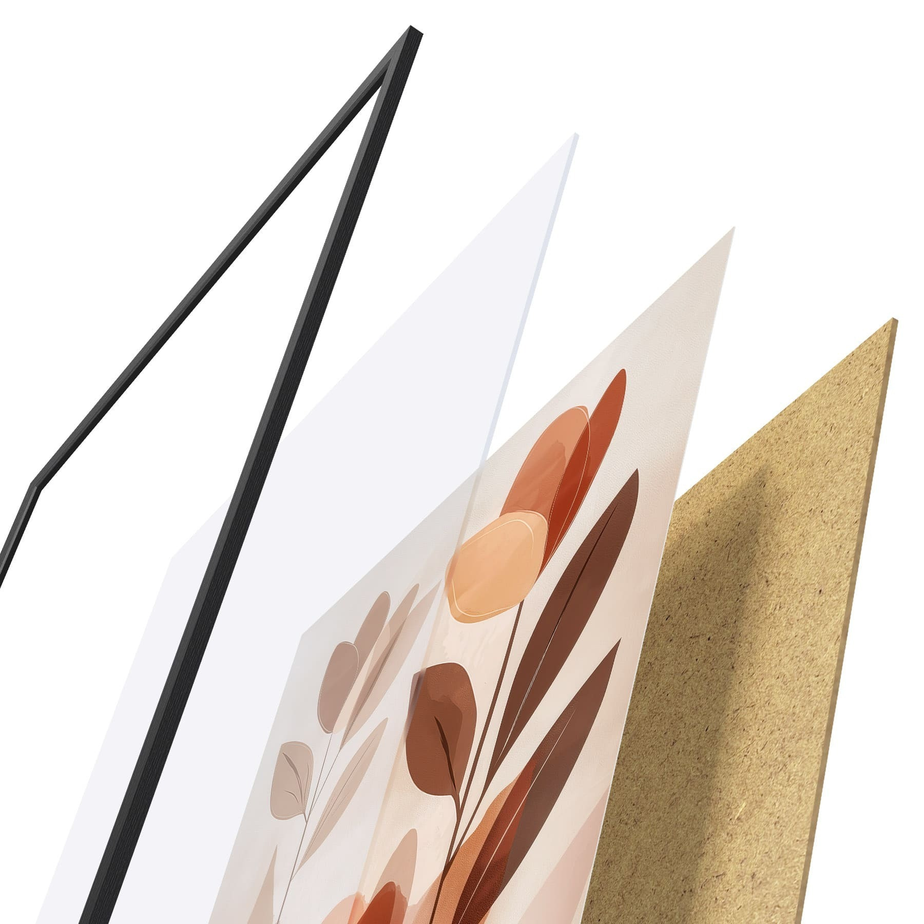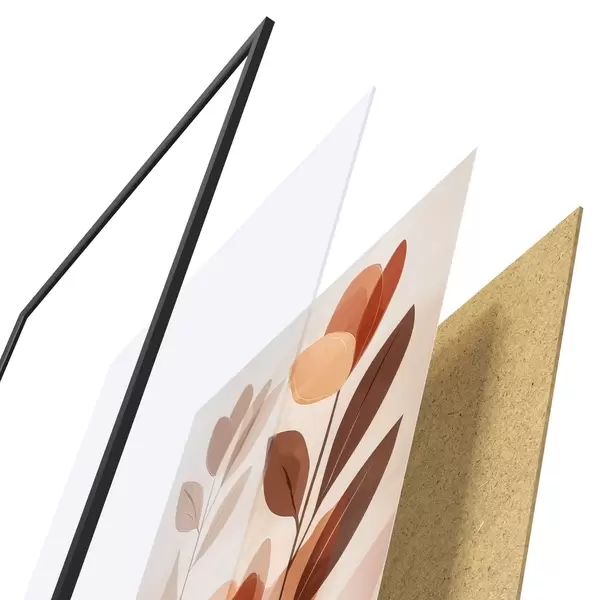 Plakat składa się z ramy, pleksi, wydrukowanego obrazu i podkładu z płyty wiórowej. Plakat można natychmiast zawiesić na ścianie dzięki uchwytom z tyłu.