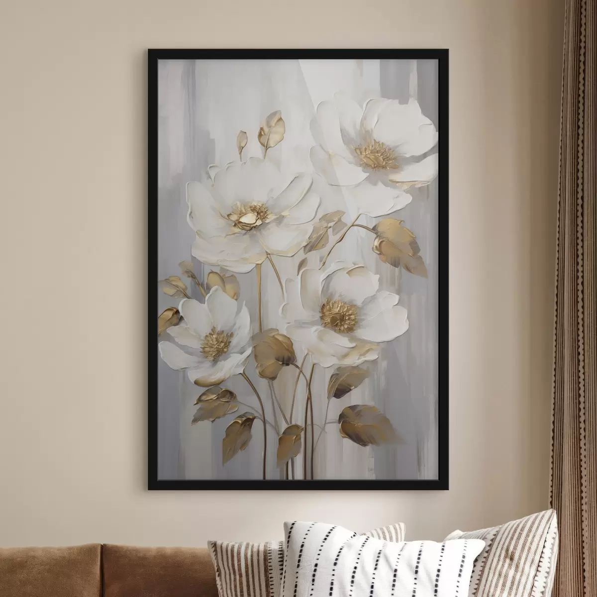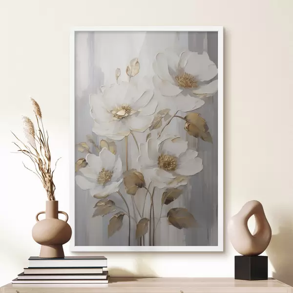 Poster Białe kwiaty z żółtymi akcentami na teksturowanym tle Nr f48722