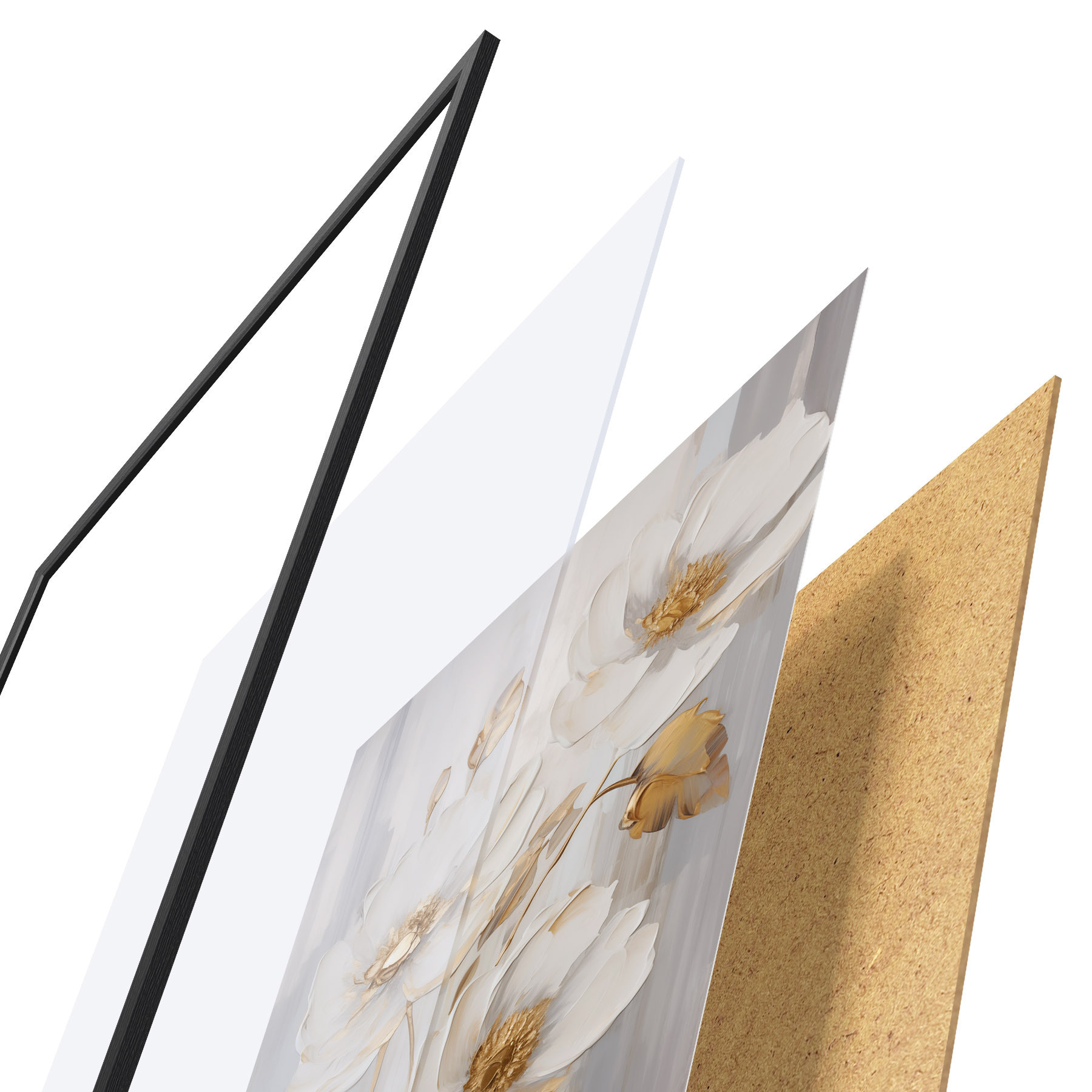 Plakat składa się z ramy, pleksi, wydrukowanego obrazu i podkładu z płyty wiórowej. Plakat można natychmiast zawiesić na ścianie dzięki uchwytom z tyłu.