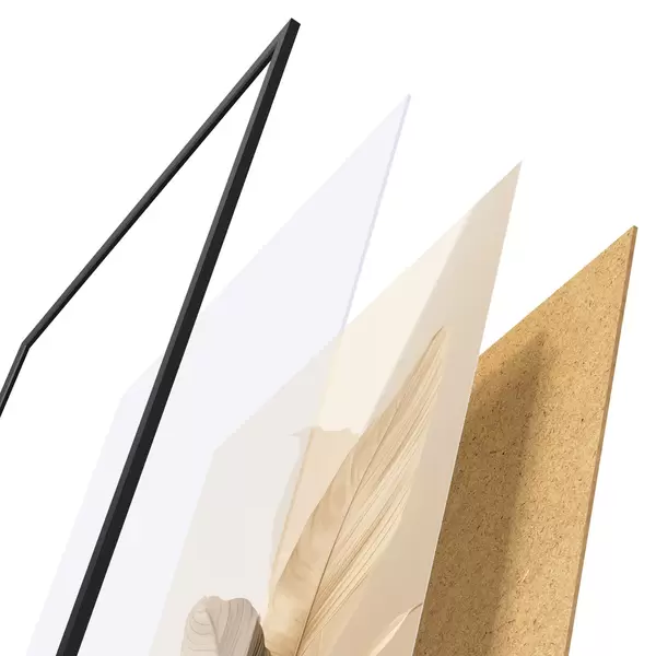 Plakat składa się z ramy, pleksi, wydrukowanego obrazu i podkładu z płyty wiórowej. Plakat można natychmiast zawiesić na ścianie dzięki uchwytom z tyłu.