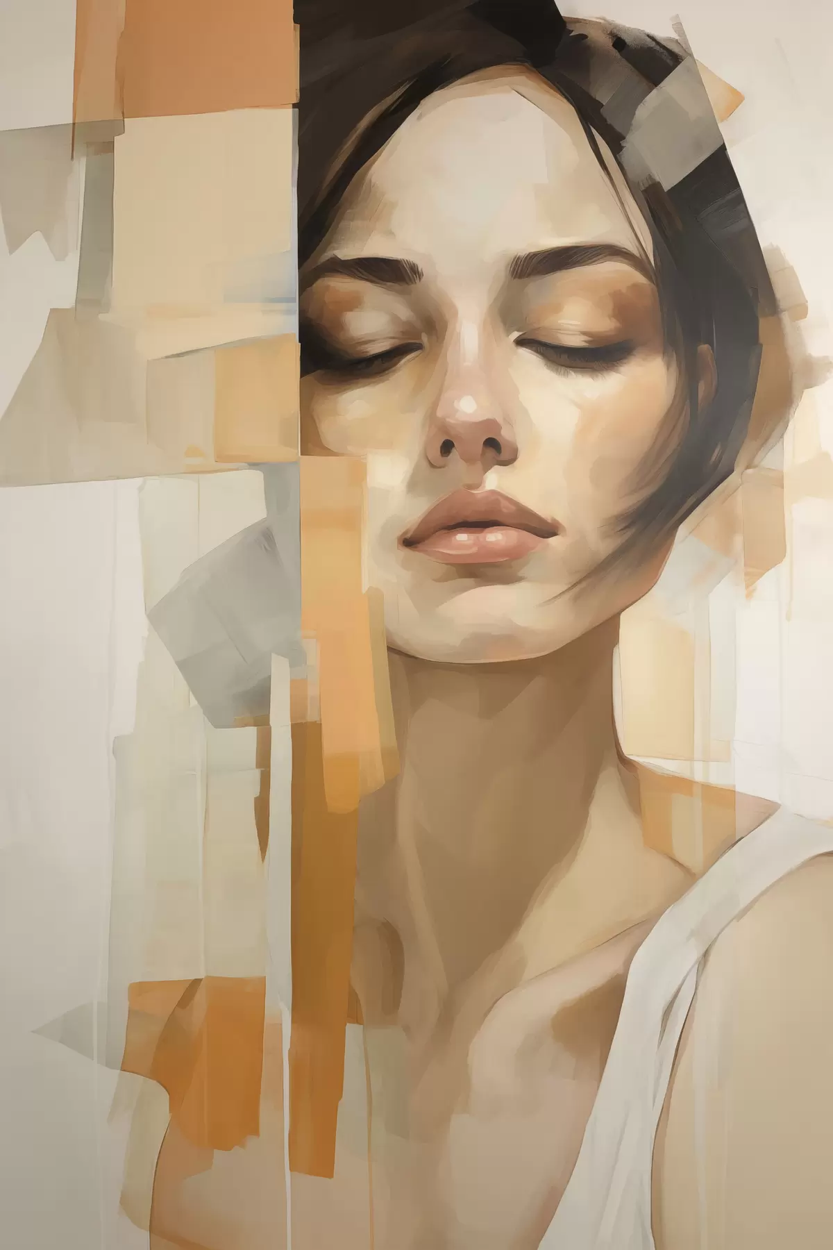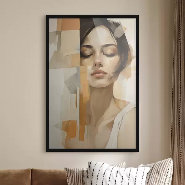 Poster Abstrakcyjny portret kobiety z pomarańczowymi i beżowymi kształtami Nr f48736