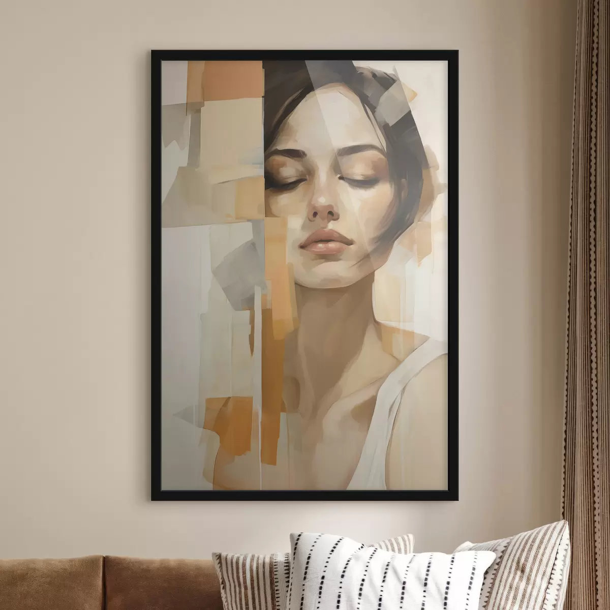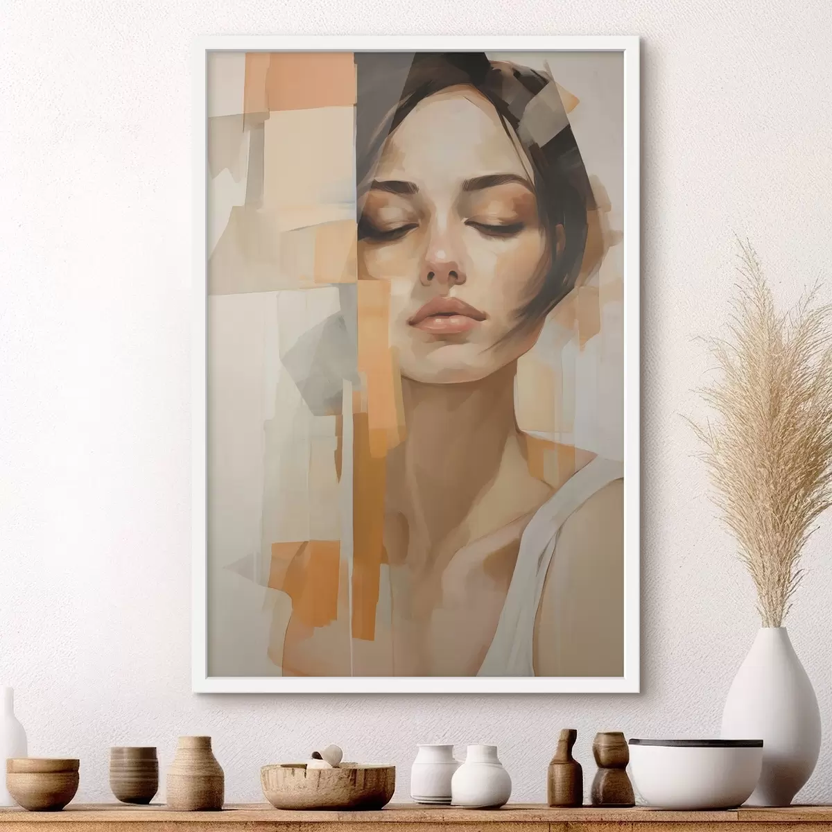 Plakat Abstrakcyjny portret kobiety z pomarańczowymi i beżowymi kształtami f48736