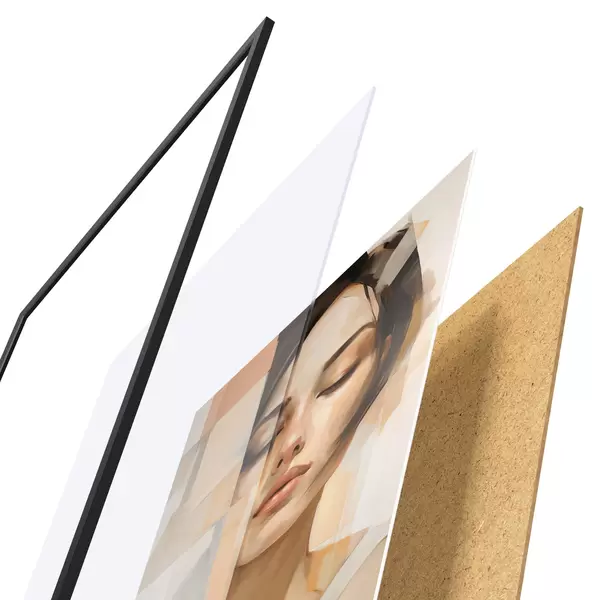 Plakat składa się z ramy, pleksi, wydrukowanego obrazu i podkładu z płyty wiórowej. Plakat można natychmiast zawiesić na ścianie dzięki uchwytom z tyłu.