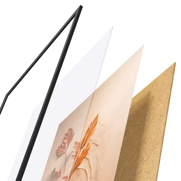 Plakat składa się z ramy, pleksi, wydrukowanego obrazu i podkładu z płyty wiórowej. Plakat można natychmiast zawiesić na ścianie dzięki uchwytom z tyłu.