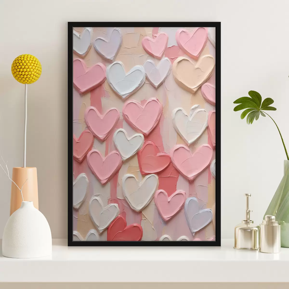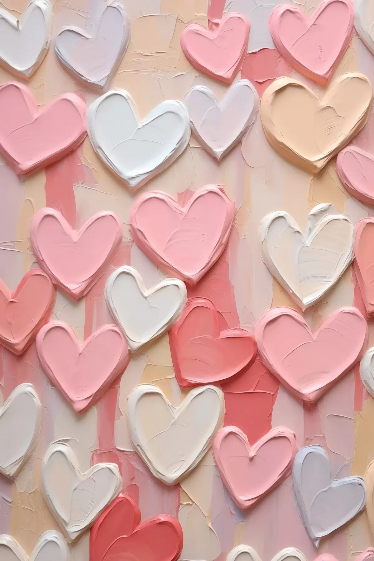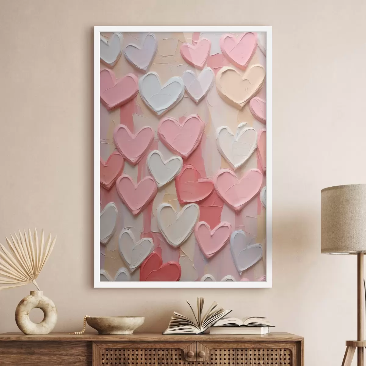 Plakat Serca w różnych odcieniach brzoskwiniowym i różowym, wykonane w stylistyce malowanej z efektem tekstury f48751