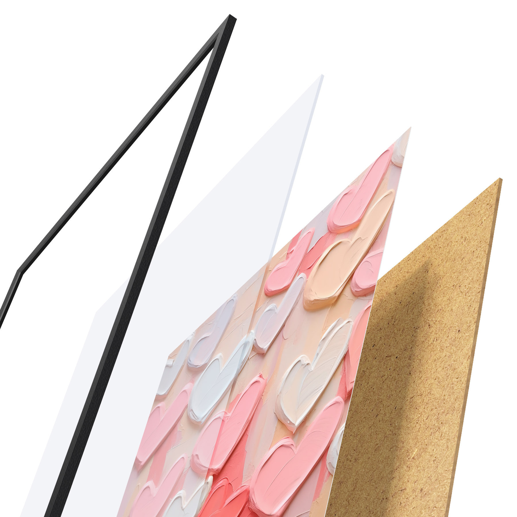 Plakat składa się z ramy, pleksi, wydrukowanego obrazu i podkładu z płyty wiórowej. Plakat można natychmiast zawiesić na ścianie dzięki uchwytom z tyłu.
