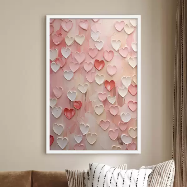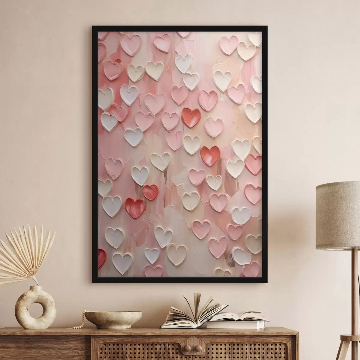 Plakat Serca w różnych odcieniach brzoskwiniowym i różowym, wykonane w stylistyce malowanej z efektem tekstury f48752