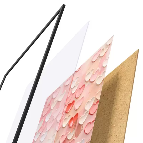 Plakat składa się z ramy, pleksi, wydrukowanego obrazu i podkładu z płyty wiórowej. Plakat można natychmiast zawiesić na ścianie dzięki uchwytom z tyłu.