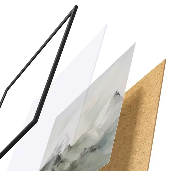 Plakat składa się z ramy, pleksi, wydrukowanego obrazu i podkładu z płyty wiórowej. Plakat można natychmiast zawiesić na ścianie dzięki uchwytom z tyłu.