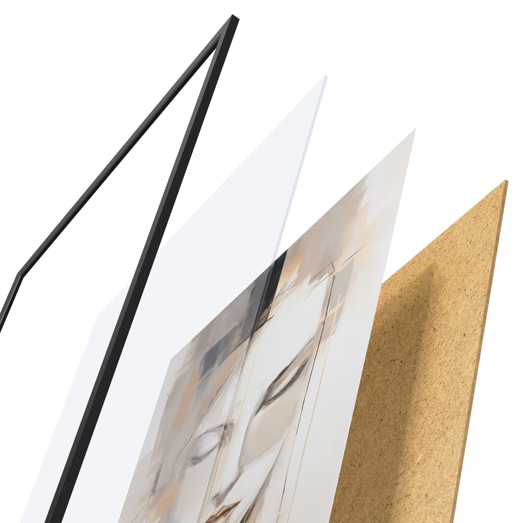 Plakat składa się z ramy, pleksi, wydrukowanego obrazu i podkładu z płyty wiórowej. Plakat można natychmiast zawiesić na ścianie dzięki uchwytom z tyłu.