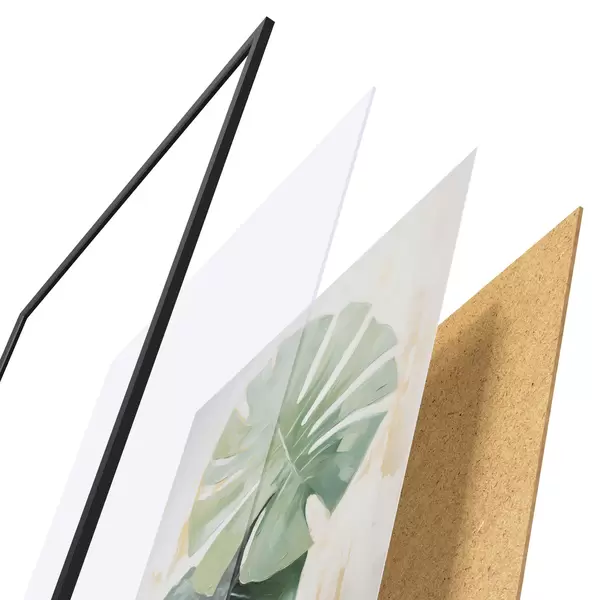 Plakat składa się z ramy, pleksi, wydrukowanego obrazu i podkładu z płyty wiórowej. Plakat można natychmiast zawiesić na ścianie dzięki uchwytom z tyłu.