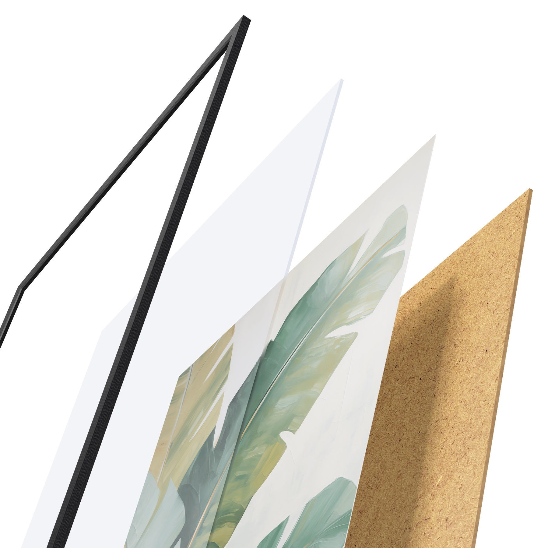 Plakat składa się z ramy, pleksi, wydrukowanego obrazu i podkładu z płyty wiórowej. Plakat można natychmiast zawiesić na ścianie dzięki uchwytom z tyłu.