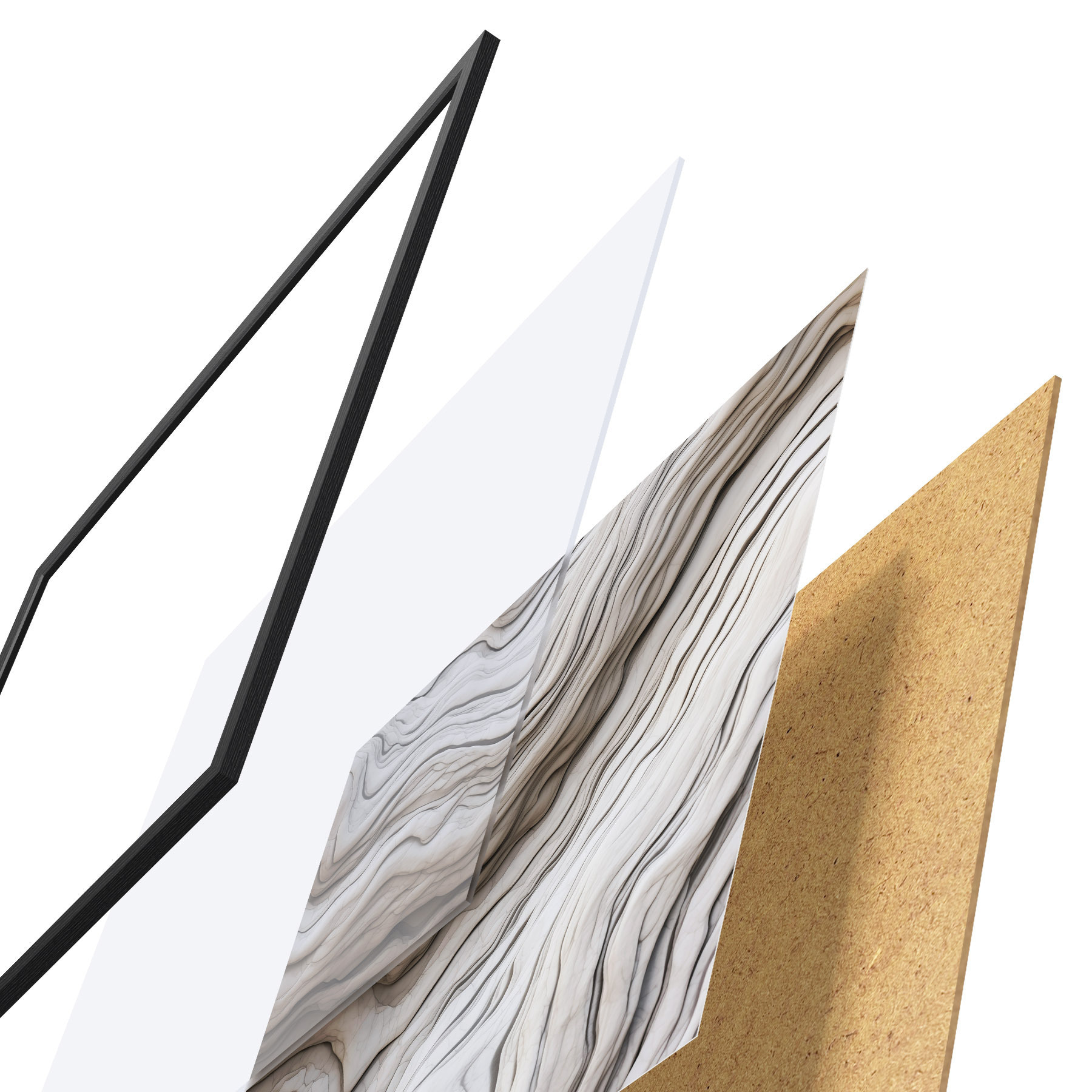 Plakat składa się z ramy, pleksi, wydrukowanego obrazu i podkładu z płyty wiórowej. Plakat można natychmiast zawiesić na ścianie dzięki uchwytom z tyłu.