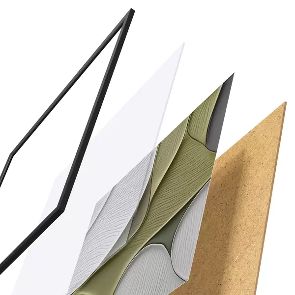 Plakat składa się z ramy, pleksi, wydrukowanego obrazu i podkładu z płyty wiórowej. Plakat można natychmiast zawiesić na ścianie dzięki uchwytom z tyłu.