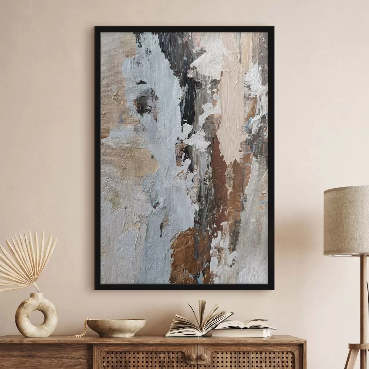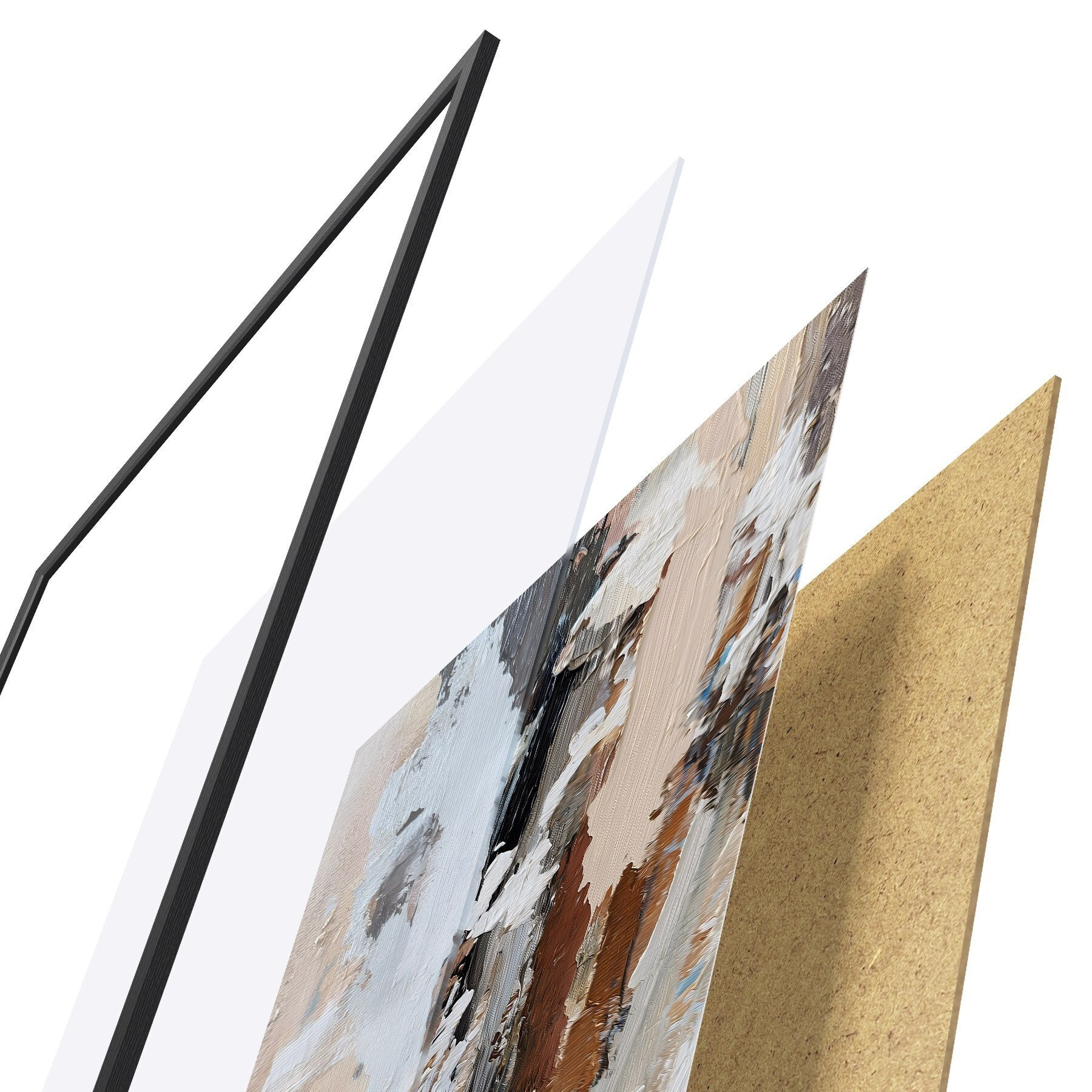 Plakat składa się z ramy, pleksi, wydrukowanego obrazu i podkładu z płyty wiórowej. Plakat można natychmiast zawiesić na ścianie dzięki uchwytom z tyłu.