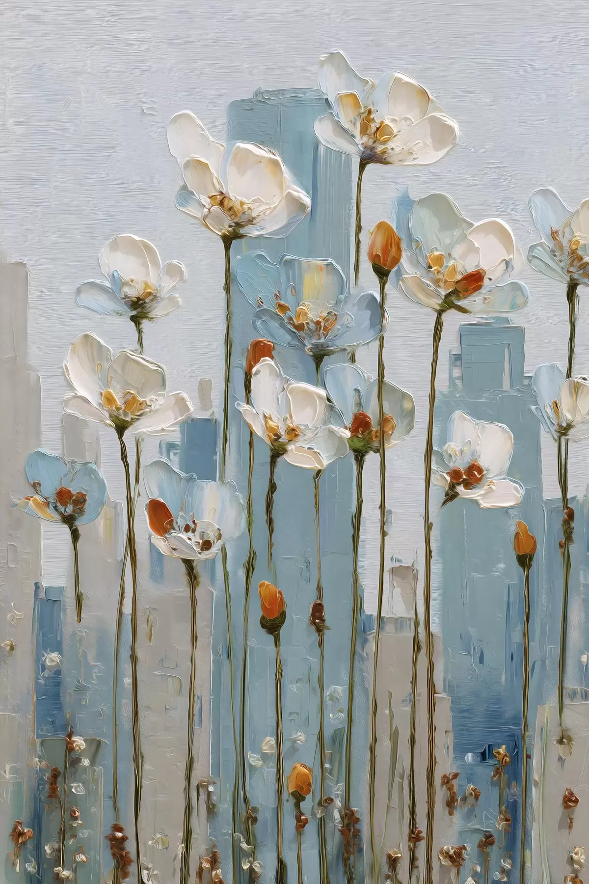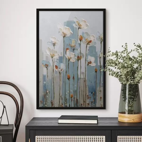 Poster kwiaty na tle miasta, w stylu malarstwa olejnego Nr f48785