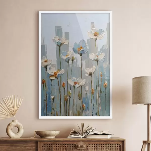 Poster kwiaty na tle miasta, w stylu malarstwa olejnego Nr f48786
