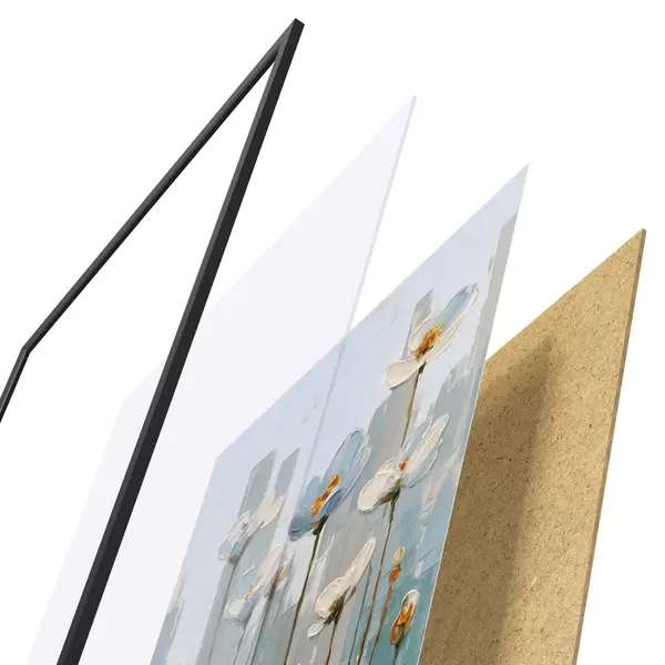 Plakat składa się z ramy, pleksi, wydrukowanego obrazu i podkładu z płyty wiórowej. Plakat można natychmiast zawiesić na ścianie dzięki uchwytom z tyłu.