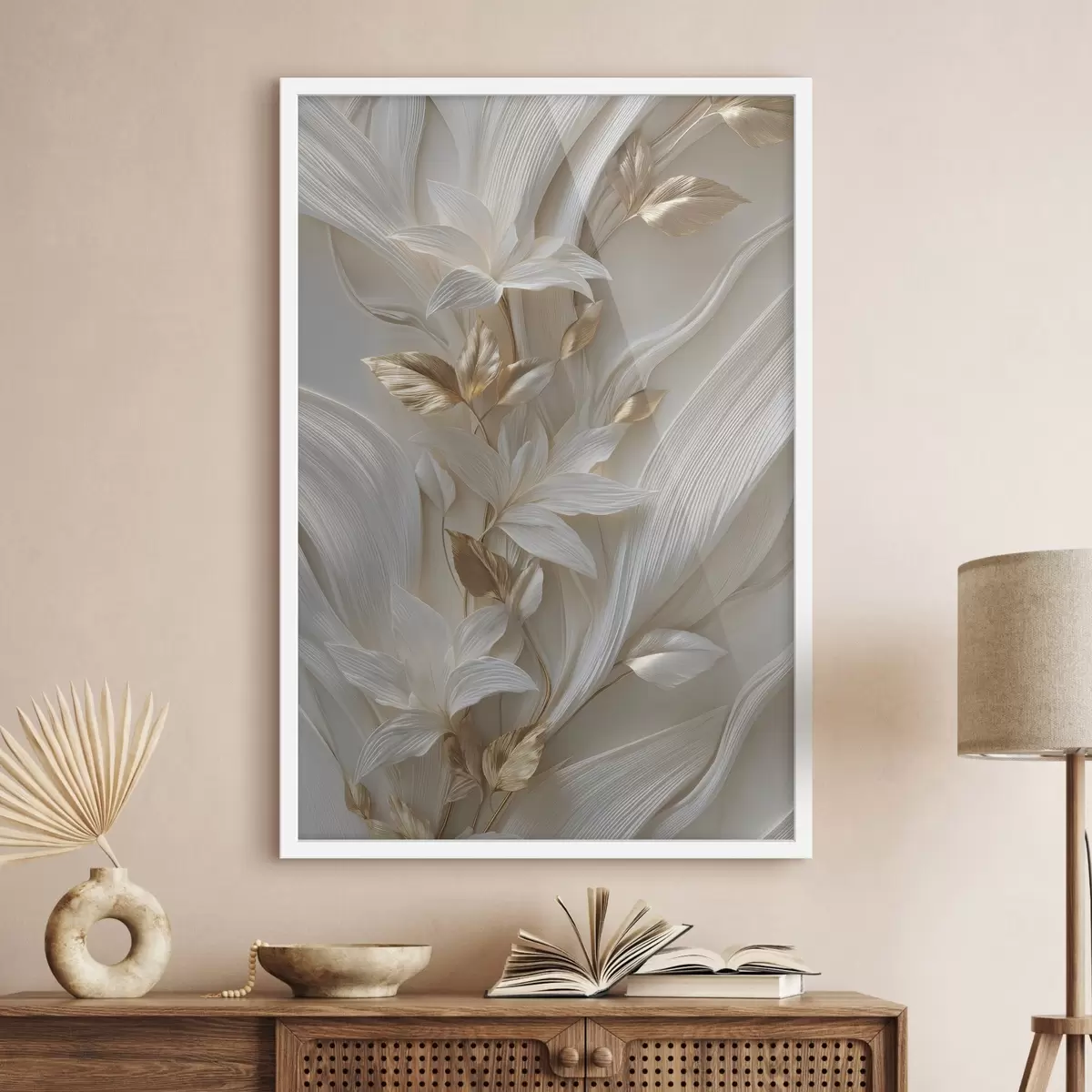 Plakat wspaniała imitacja trójwymiarowych liści, faktur i kwiatów f48788