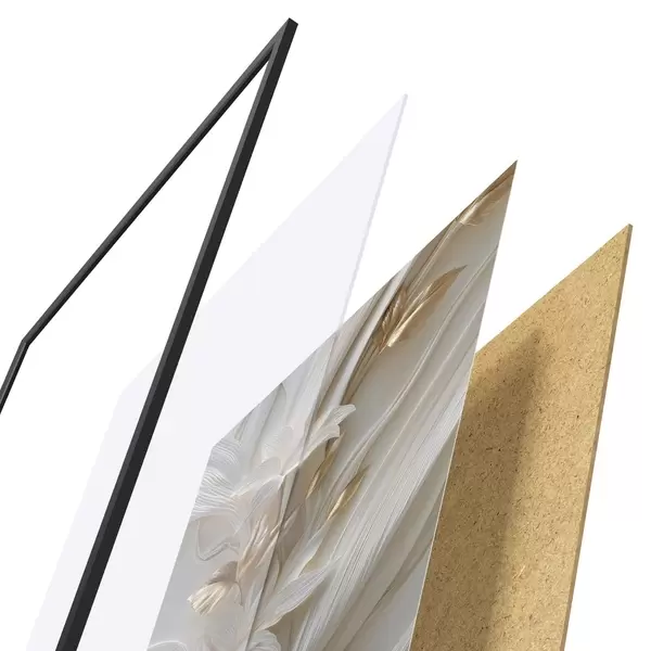 Plakat składa się z ramy, pleksi, wydrukowanego obrazu i podkładu z płyty wiórowej. Plakat można natychmiast zawiesić na ścianie dzięki uchwytom z tyłu.