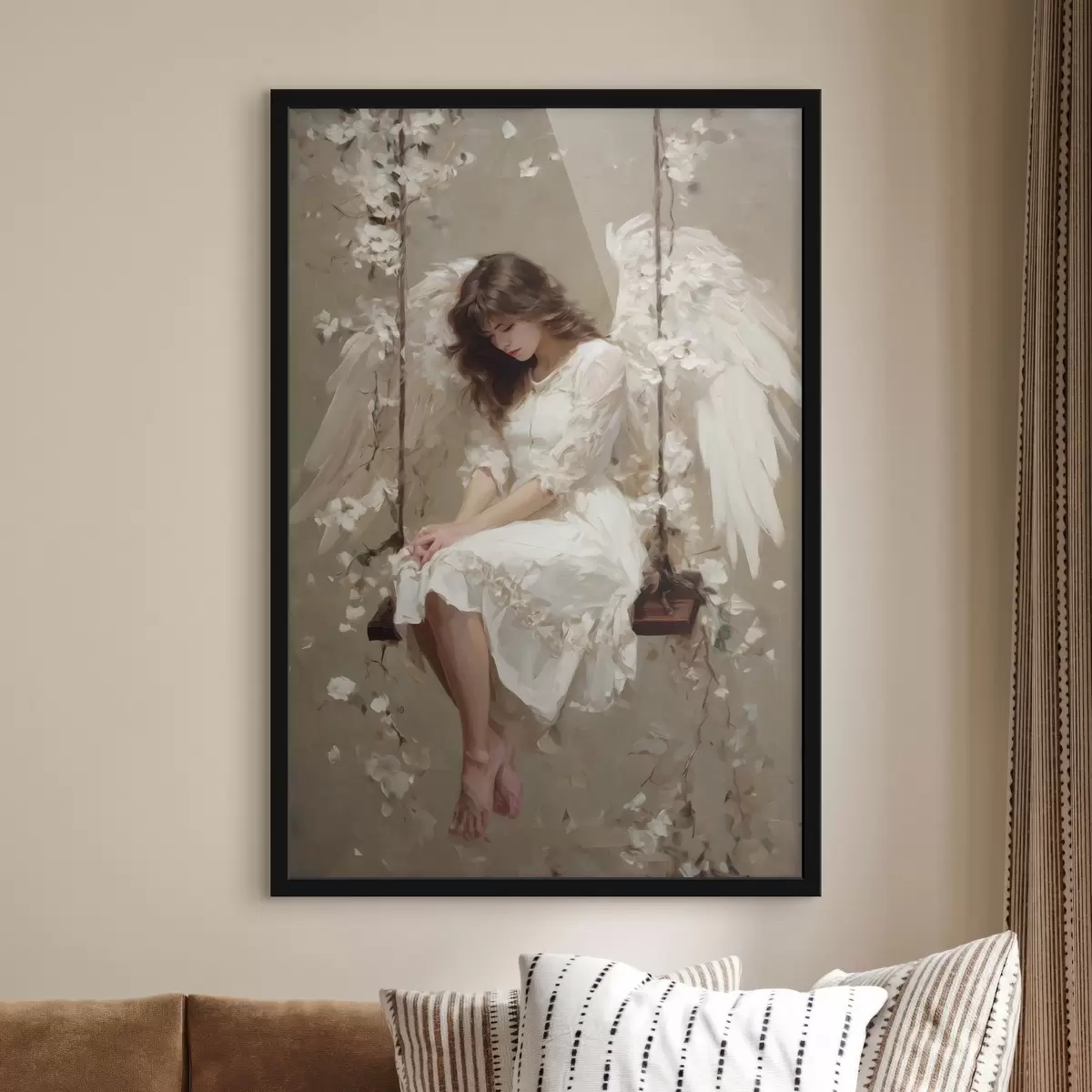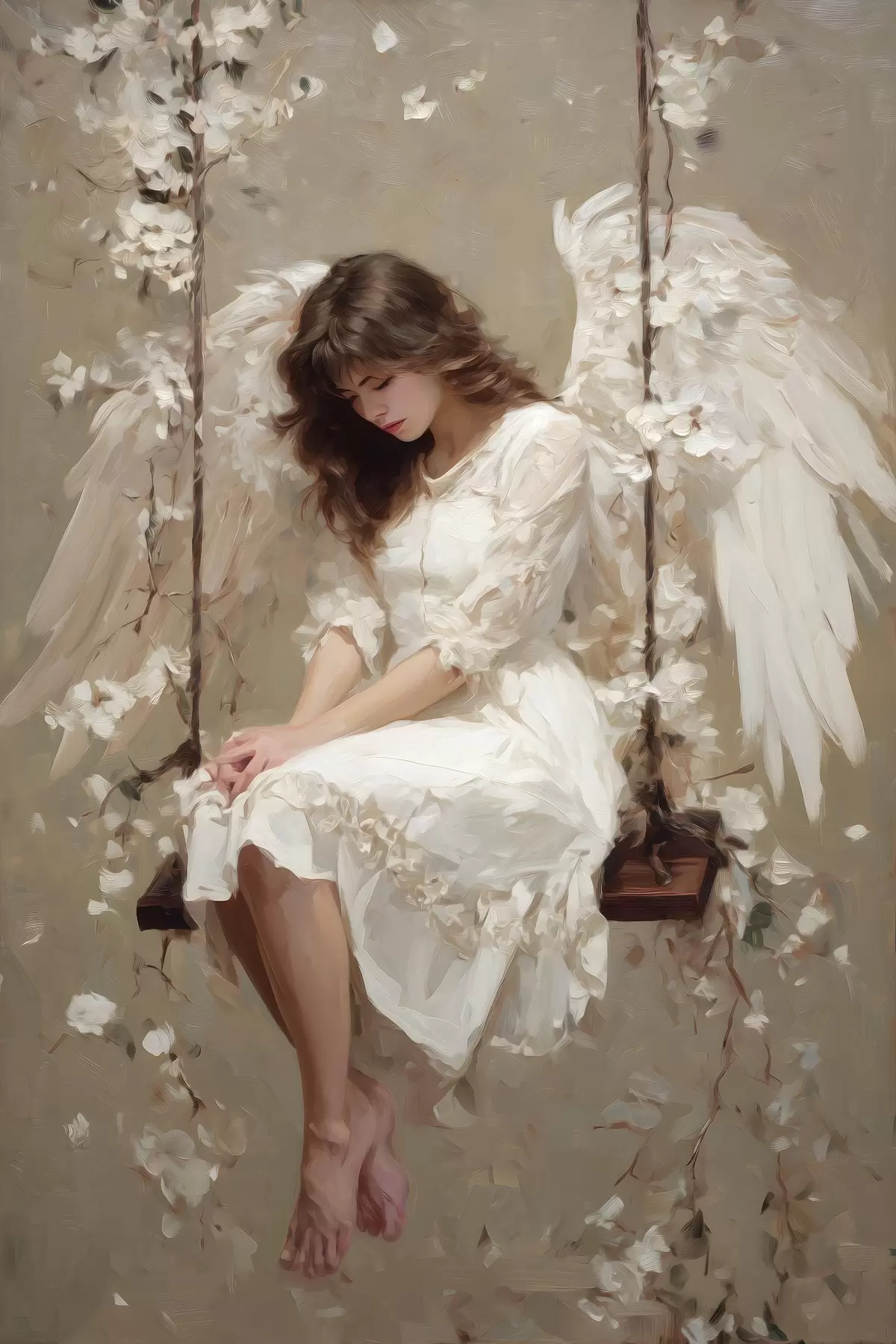 Poster dziewczynka-aniołek na huśtawce, namalowana techniką olejną Nr f48789