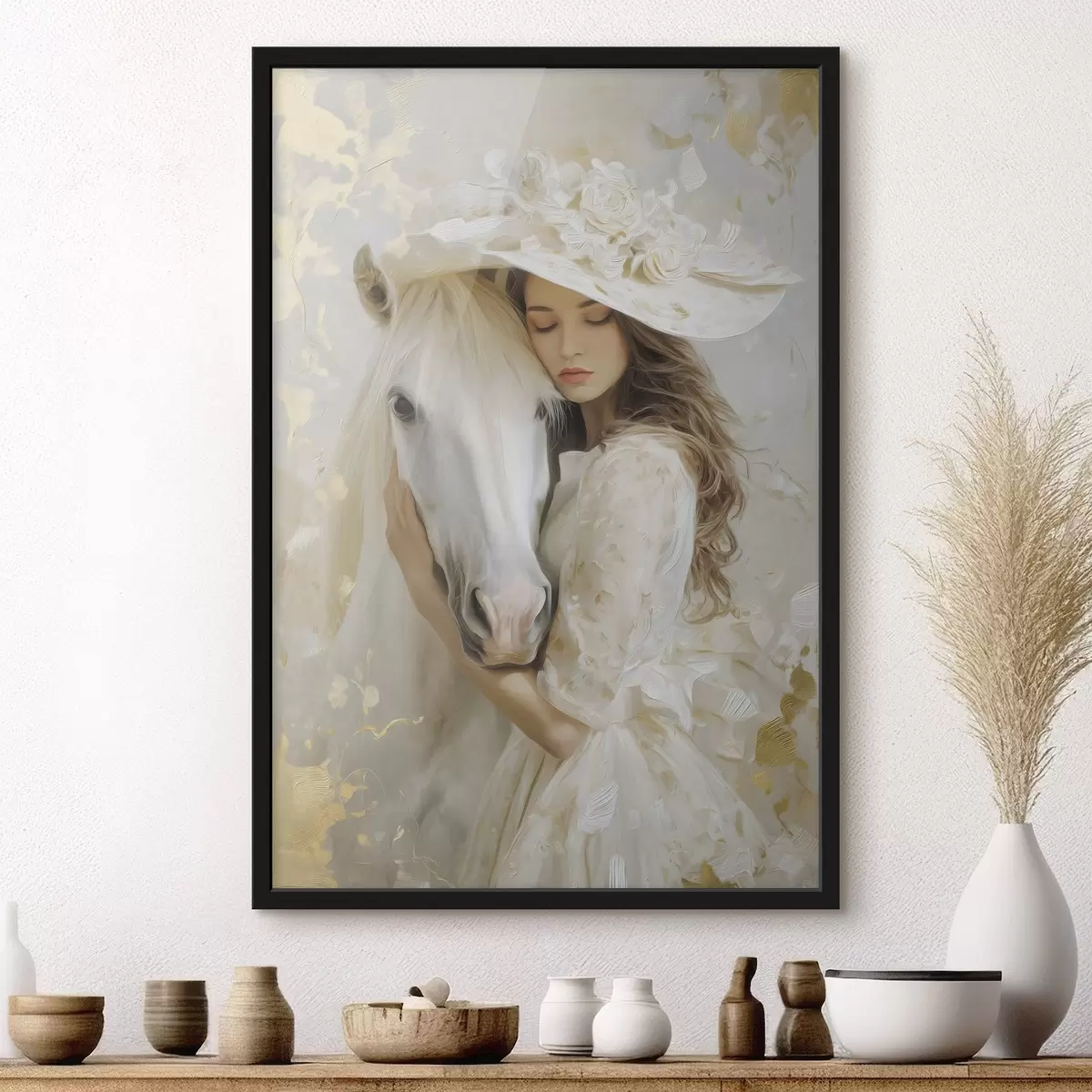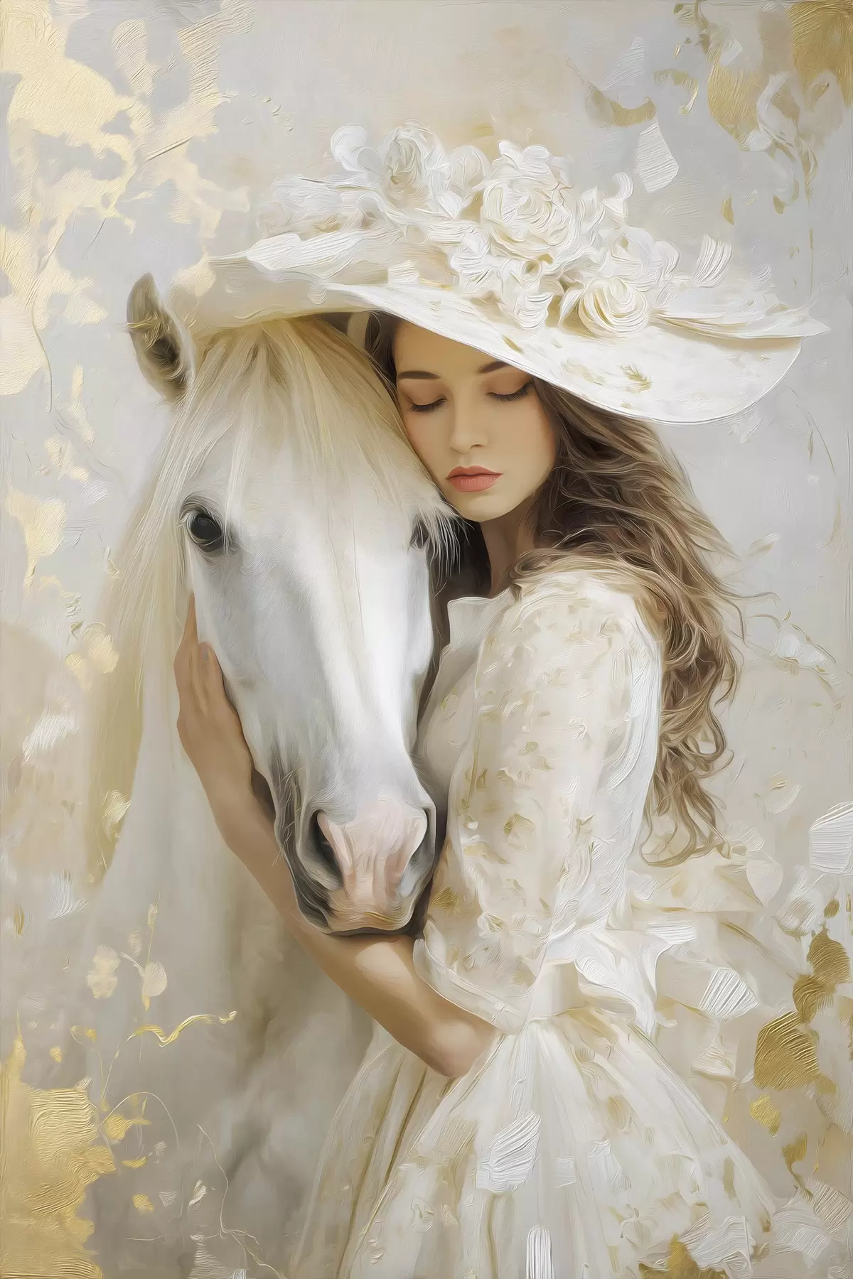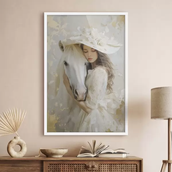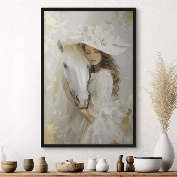 Poster dziewczyna z białym koniem, namalowana techniką olejną Nr f48790