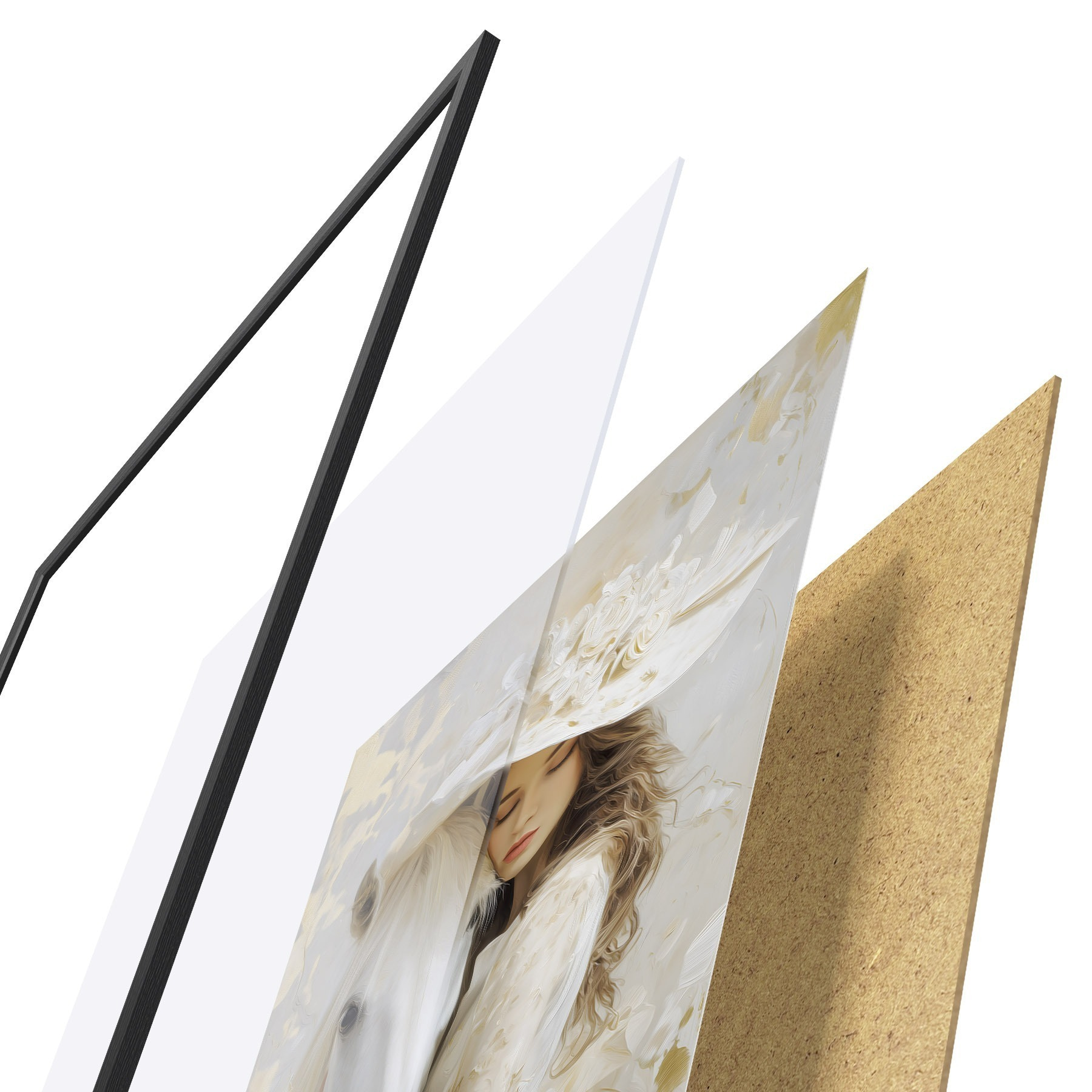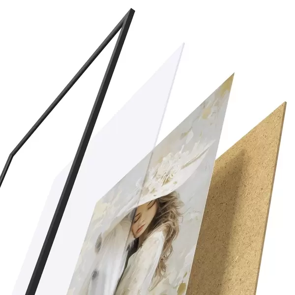 Plakat składa się z ramy, pleksi, wydrukowanego obrazu i podkładu z płyty wiórowej. Plakat można natychmiast zawiesić na ścianie dzięki uchwytom z tyłu.