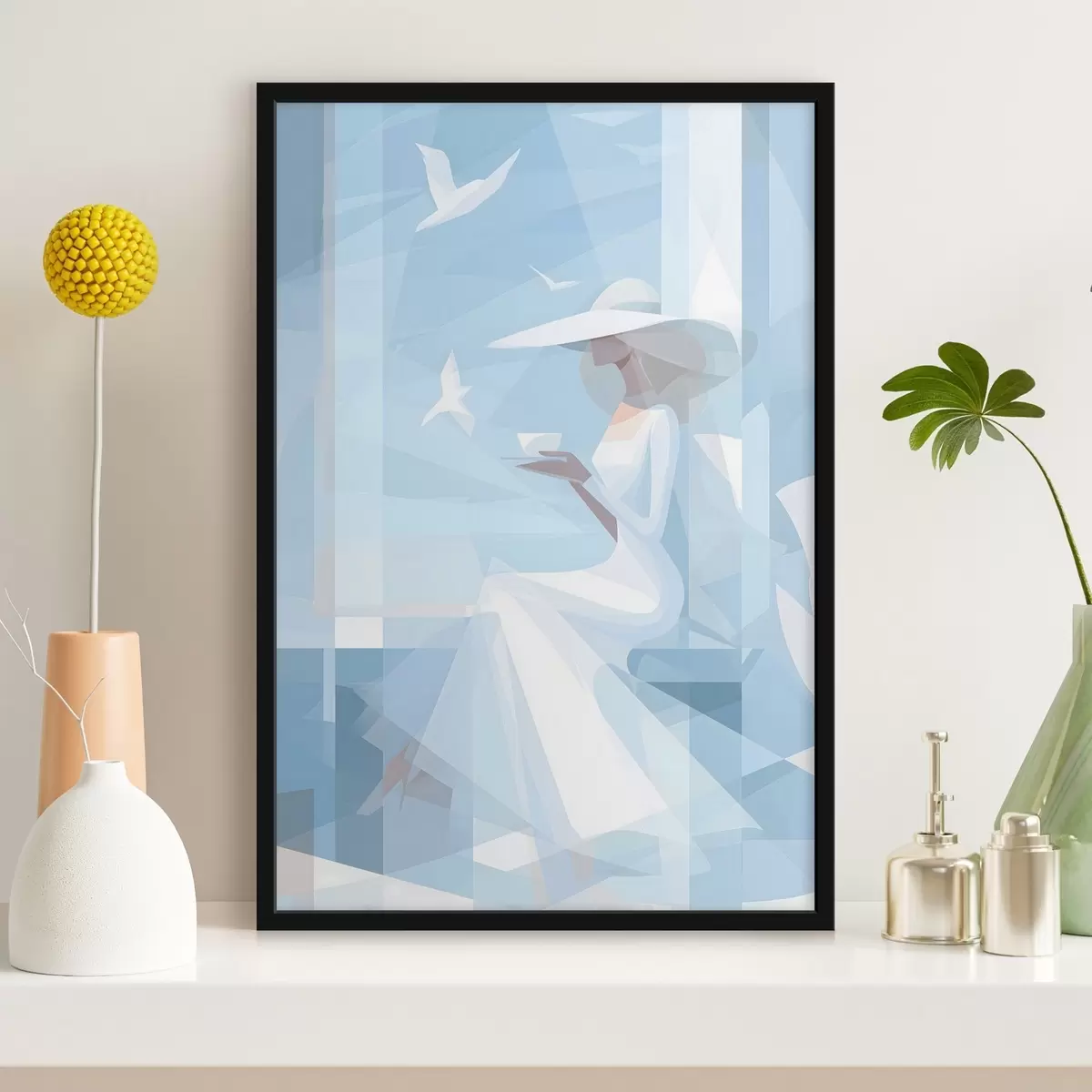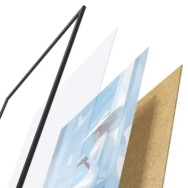 Plakat składa się z ramy, pleksi, wydrukowanego obrazu i podkładu z płyty wiórowej. Plakat można natychmiast zawiesić na ścianie dzięki uchwytom z tyłu.