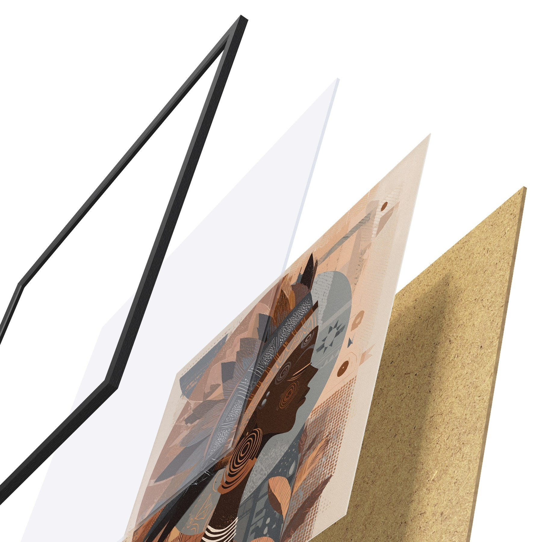 Plakat składa się z ramy, pleksi, wydrukowanego obrazu i podkładu z płyty wiórowej. Plakat można natychmiast zawiesić na ścianie dzięki uchwytom z tyłu.