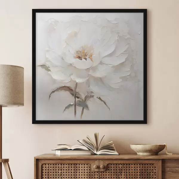 Plakat Biały kwiat w stylu impasto, namalowany delikatnymi pociągnięciami pędzla f48801