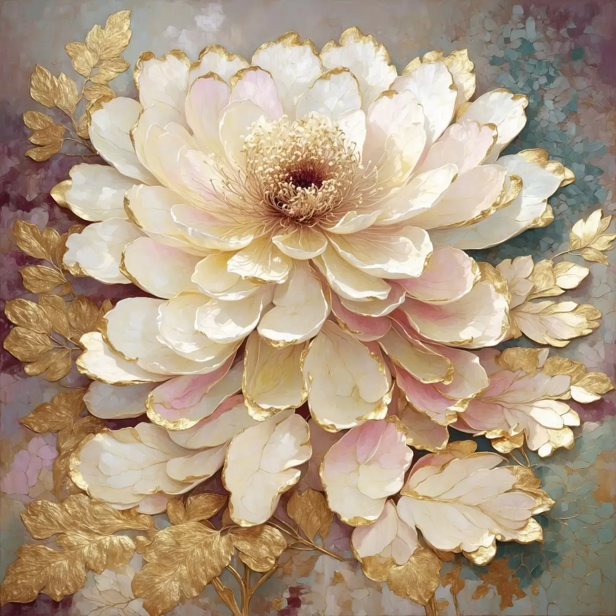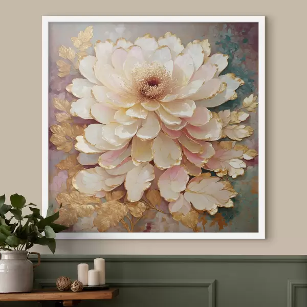 Poster Kwiat w stylu chinoiserie z ozdobnymi liśćmi i detalami Nr f48804