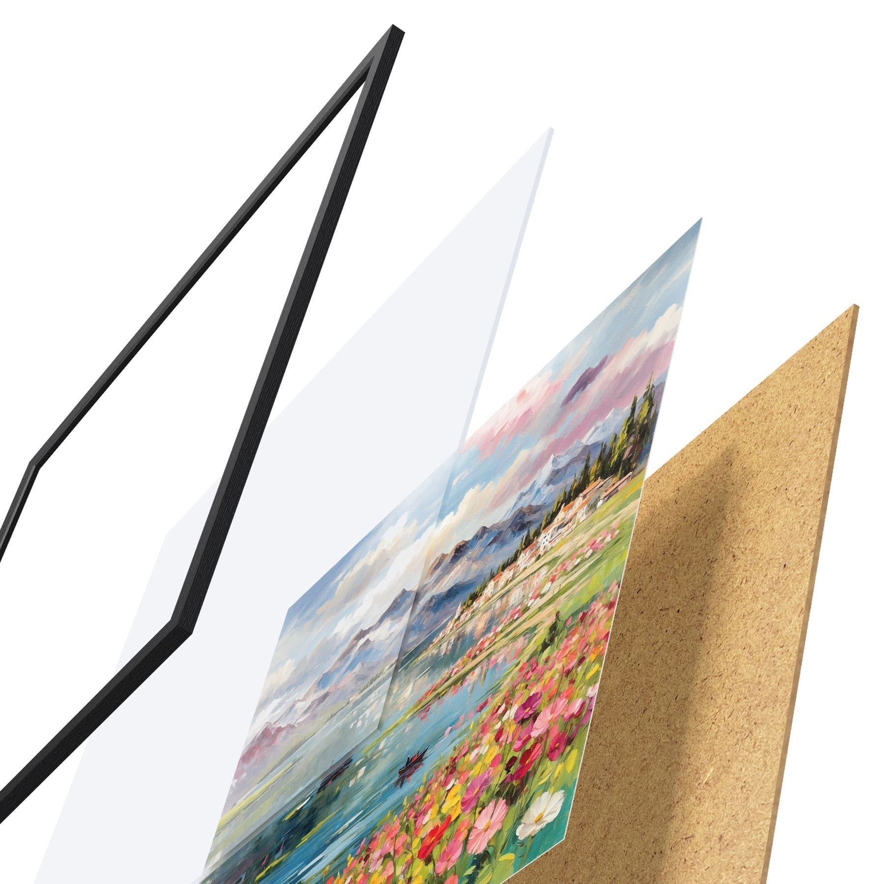 Plakat składa się z ramy, pleksi, wydrukowanego obrazu i podkładu z płyty wiórowej. Plakat można natychmiast zawiesić na ścianie dzięki uchwytom z tyłu.