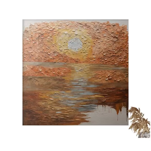 Plakat Abstrakcyjny zachód słońca nad wodą w stylu impasto f48815