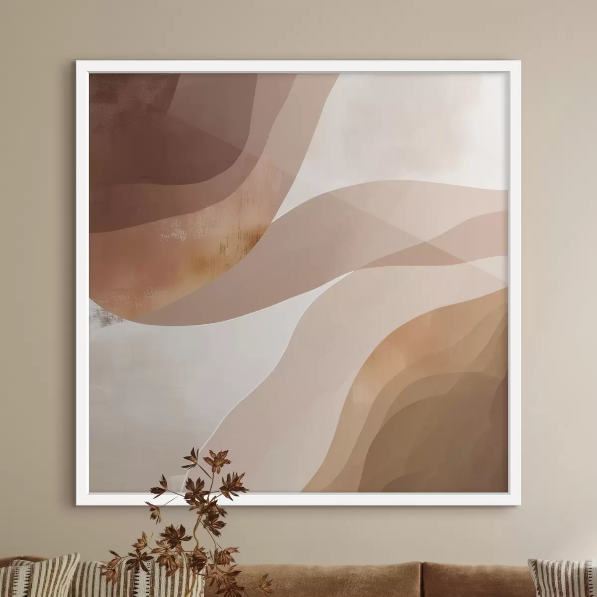 Plakat Abstrakcyjne, faliste kształty w kawowo-beżowej kolorystyce f48836