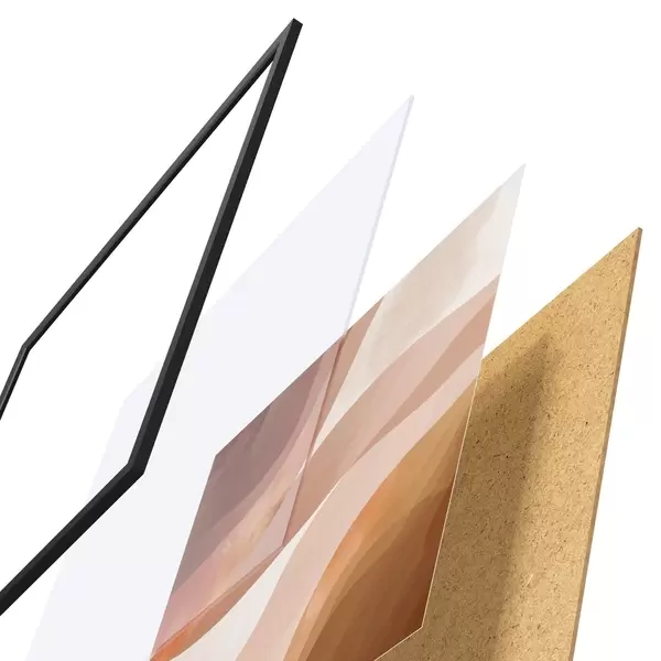 Plakat składa się z ramy, pleksi, wydrukowanego obrazu i podkładu z płyty wiórowej. Plakat można natychmiast zawiesić na ścianie dzięki uchwytom z tyłu.