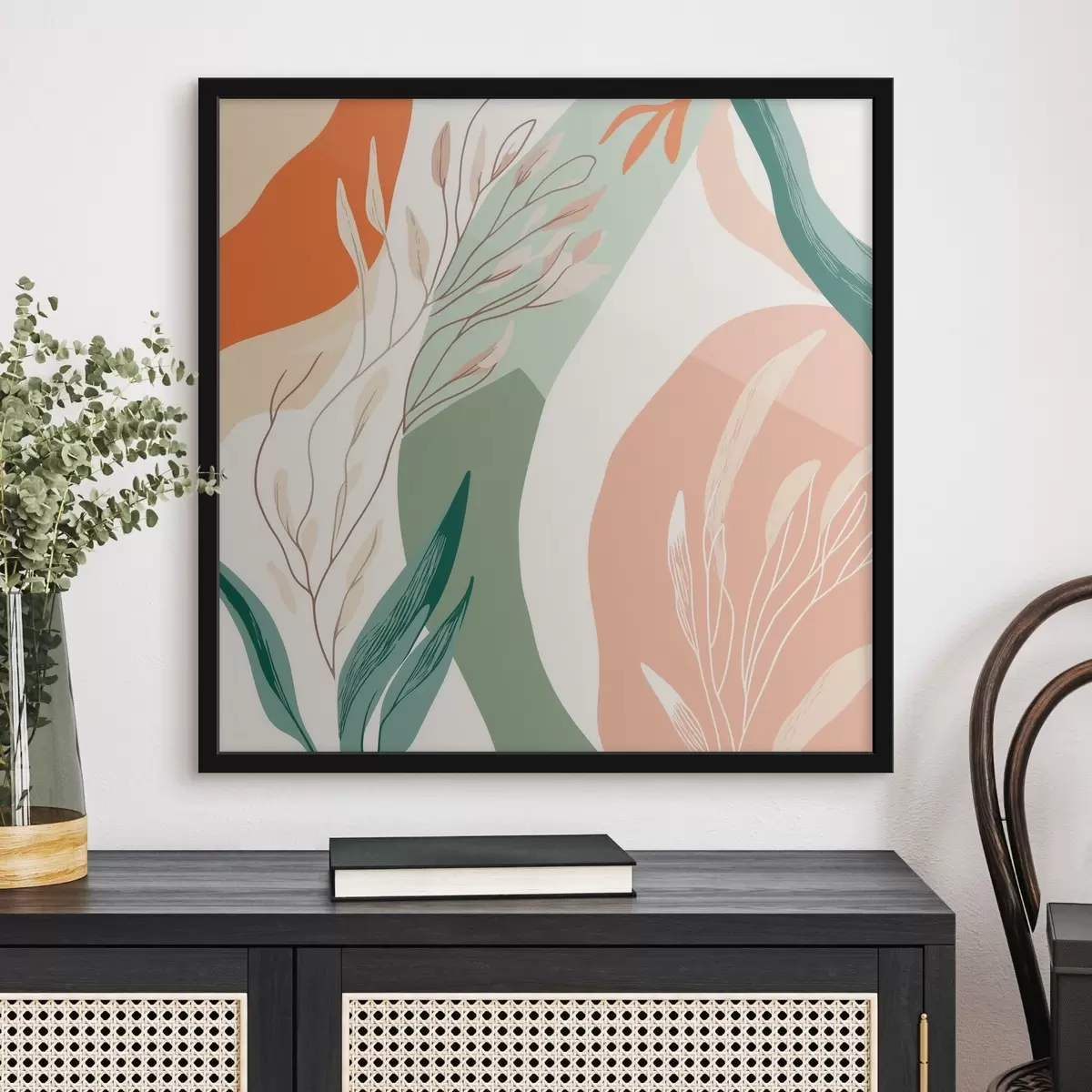 Poster Sztuka botaniczna o delikatnych kształtach w koralowo-zielonej kolorystyce Nr f48840