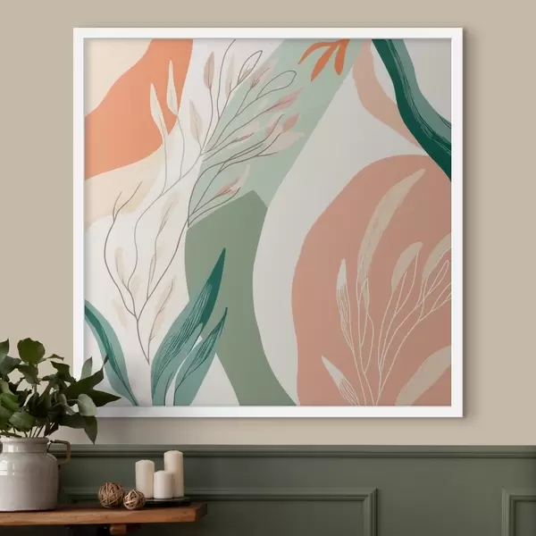 Plakat Sztuka botaniczna o delikatnych kształtach w koralowo-zielonej kolorystyce f48840