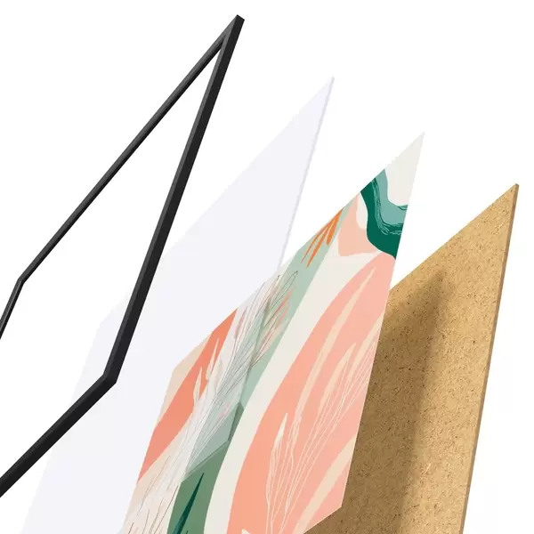 Plakat składa się z ramy, pleksi, wydrukowanego obrazu i podkładu z płyty wiórowej. Plakat można natychmiast zawiesić na ścianie dzięki uchwytom z tyłu.