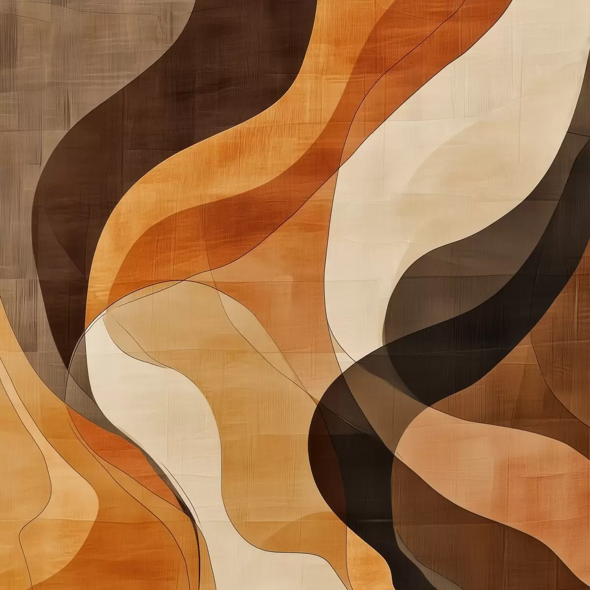 Poster Kompozycja abstrakcyjna z dynamicznymi falistymi liniami w terakotowo-brązowej kolorystyce Nr f48851