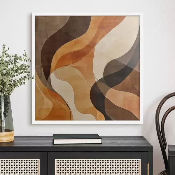 Plakat Kompozycja abstrakcyjna z dynamicznymi falistymi liniami w terakotowo-brązowej kolorystyce f48851