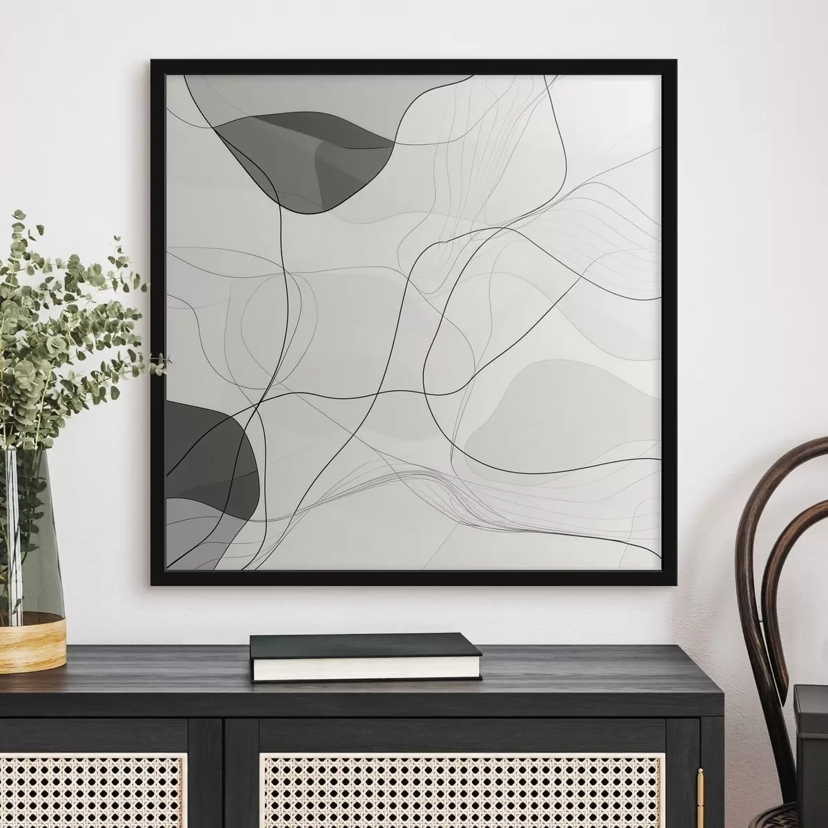 Plakat Minimalistyczna, abstrakcyjna kompozycja z cienkimi liniami i delikatnymi cieniami f48853