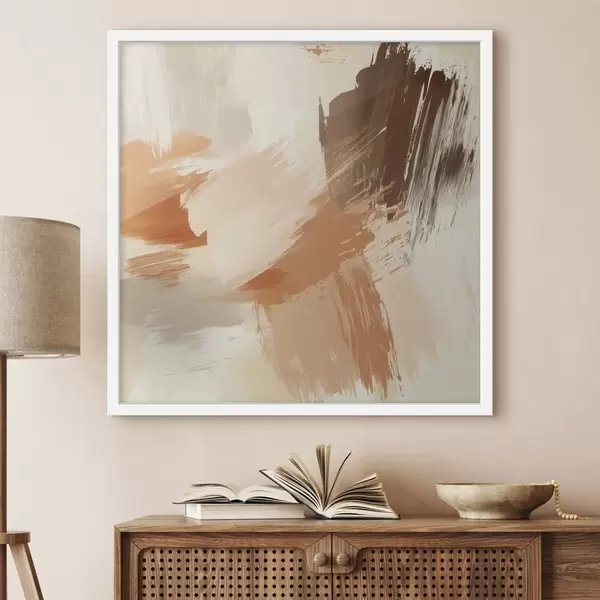 Plakat Naśladowanie abstrakcyjnych pociągnięć pędzla w odcieniach piaskowych i brązowych f48857