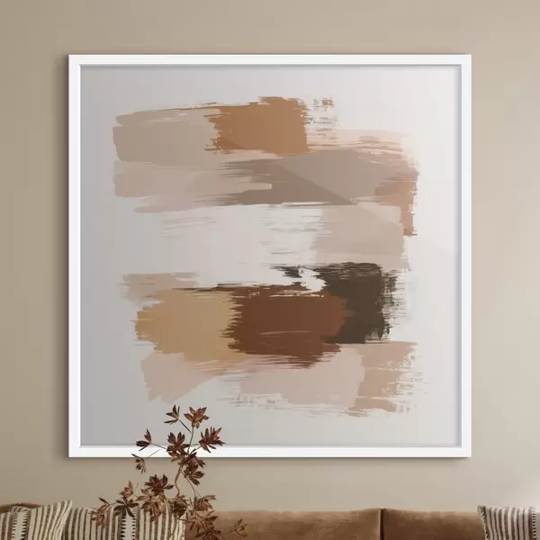 Plakat Minimalistyczna kompozycja z poziomymi pociągnięciami pędzla w odcieniach kawy i terakoty f48858