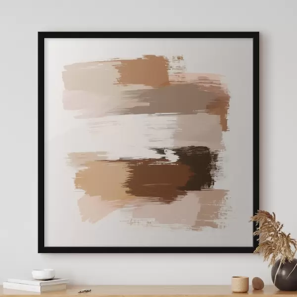 Poster Minimalistyczna kompozycja z poziomymi pociągnięciami pędzla w odcieniach kawy i terakoty Nr f48858