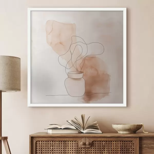Plakat Lakoniczna kompozycja z wazonem i graficznymi liniami w stylu minimalistycznym f48869