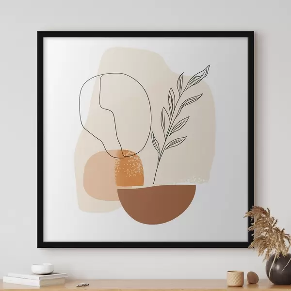 Poster Martwa natura z graficznymi akcentami i pastelowymi kształtami w stylu sztuki współczesnej Nr f48872